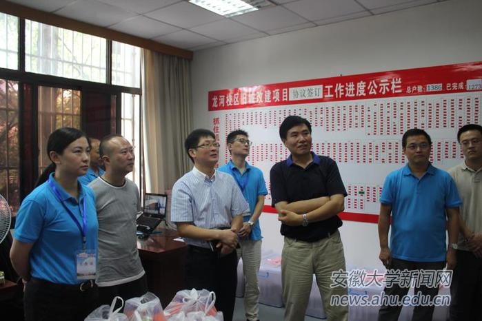 张红军详细地询问了项目推进总体情况和入户中遇到的困难和问题,勉励大家再接再厉,扩大成果。张红军强调,在入户开展工作时,要深入宣传相关政策,加强与住户的沟通交流,对住户提出的问题及时解答或上报项目指挥部研究答复。要切实加快签约进度,为下一步实施改建工程打好基础,从而早日改善安大教职工住房条件。