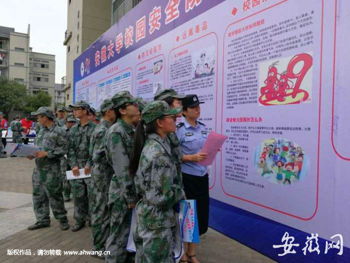 为确保校园安全,辖区芙蓉派出所也和安徽大学于近期陆续开展了系列安全教育活动,特别是针对校园电信诈骗和“校园贷”等违法犯罪活动,民警整理、搜集15种诈骗形式和防骗提示,并制作微视频,通过线上视频同步转播的方式对4800余名新生开展现场法制宣传讲座,从源头减少诈骗犯罪的发生。
