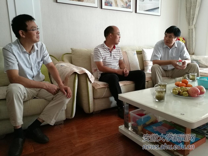 本网讯(新闻中心姚家宁)在第34个教师节来临之际,9月8日,校党委书记李仁群,党委副书记、常务副校长王群京,党委常委、副校长虞宝桃分别看望了计算机科学与技术学院教授张兴义、徽学研究中心研究员刘伯山、物理与材料科学学院教授杨瀛海、社会与政治学院教授沈昕、数学科学学院教授杨尚骏、商学院教授周泽将。