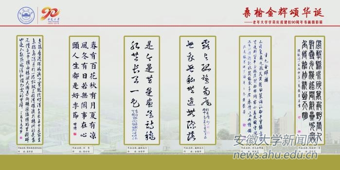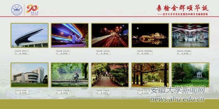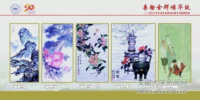 90周年,校老年大学在龙河校区宣传橱窗举办“桑榆金辉庆华诞”书画摄影展,为学校90华诞献上一份饱含浓浓深情的特殊礼物。