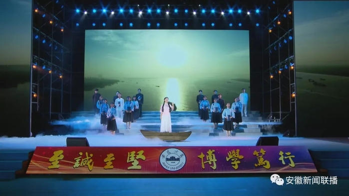 在随后举行的校庆文艺展演中,师生们用饱含真情的创意歌舞和情景表演,回顾了安徽大学90年的光辉办学历程和改革发展之路,展现出了安大师生奋力前行、追求卓越的昂扬风貌。