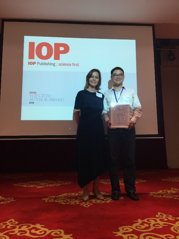 本网讯(张玲)近日,英国物理学会(IOP)公布了“2018年英国物理学会(IOP)高被引中国作者奖”(Top Cited Author Award (China)),我校物理与材料科学学院王栋副教授以第一、通讯作者身份发表在Laser Phys. Lett. [14 (2017) 055205]的文章“Exploration of quantum-memory-assisted entropic uncertainty relations in a noninertial frame”成功入选。9月14日,IOP出版集团于2018中国物理学会秋季年会上向王栋博士颁发了获奖证书。这是英国物理学会(IOP)首次授予中国科技工作者此项荣誉。