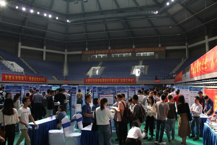 本网讯(新闻中心 宋怡然 姚家宁)9月29日,合肥市2018年秋季招才引智活动(安徽大学站)在我校磬苑体育馆举行。本次活动由合肥市人力资源和社会保障局、合肥经开区管委会、安徽大学主办,由合肥市公共就业人才服务管理中心、合肥经开区人事劳动局、安徽大学毕业生就业指导中心承办。