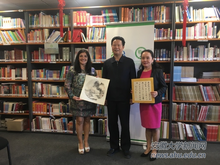 最后,省政协代表团一行赠送了智利圣托马斯大学孔院一幅中国山水画并祝愿孔院越办越好。