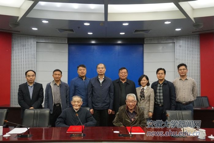 俞本立对两位教授表达了亲切的问候与衷心的感谢。他表示,每个学校都以自己的历史而骄傲,我校也将沿历史痕迹继续前行。此次的捐赠不仅仅是档案文物的捐赠,更是两位教授对安徽大学终生的爱的捐赠。