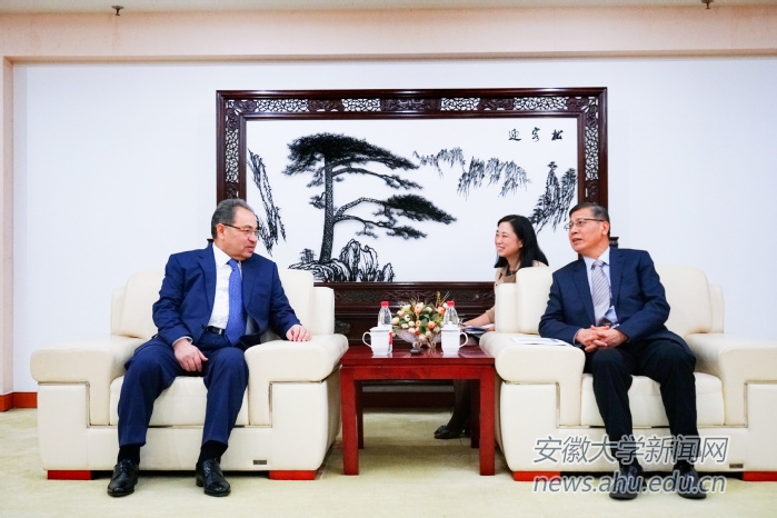 巴库国立大学副校长纳比·拉马萨恩尔、远东语言和文学教研室主任奥克泰·扎里贝里与我校相关部门负责同志一同参加会见。