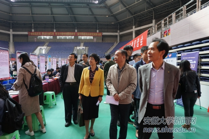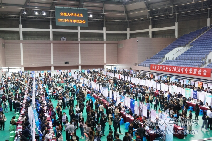 本网讯(新闻中心 王一帆 杨越 姚家宁)11月3日上午,安徽大学毕业生2018年冬季双选会在磬苑体育馆举行,吸引了来自各行各业的200多家企事业单位前来参加。省大中专毕业生就业指导中心副主任袁江林,校党委常委、副校长程雁雷等领导在双选会现场检查指导工作并看望毕业生,了解用人单位需求和毕业生的就业情况。