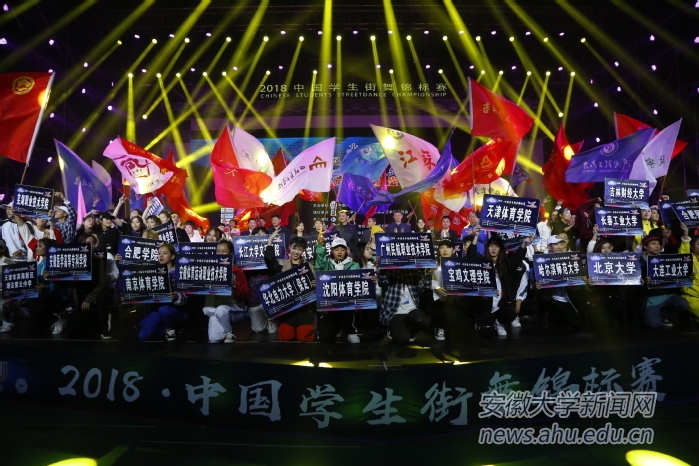 本网讯(新闻中心 姚家宁 张景)11月8日-13日,由中国大学生体育协会主办、中国大学生体育协会健美操艺术体操分会执行、安徽大学承办的2018·中国学生街舞锦标赛在我校磬苑体育馆成功举办。来自19个省市、48所院校的600余名运动员参与本次大赛。