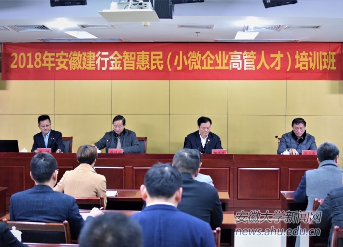 本网讯(新闻中心 陈佳怡 吴宏健)11月20日上午,安徽省建行金智惠民(小微企业高管人才)培训班在磬苑宾馆学术交流中心多功能厅举行开班仪式。校党委常委、副校长薛照明、建行安徽省分行纪委书记杨庆生出席并讲话。活动由省分行普惠金融事业部总经理洪峰主持。共40多名小微企业高管参加培训班。