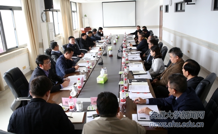 座谈会上,校党委书记李仁群汇报了学校双一流建设、法学学科建设和人才培养情况。法学院院长郭志远汇报了法治安徽建设相关调研建议。