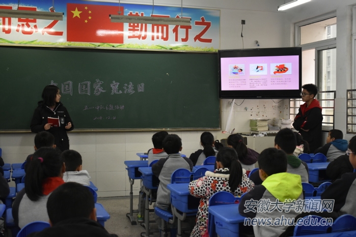 安徽大学法律援助志愿者协会的志愿者们来到了合肥市太湖路小学,为小朋友开展了主题为“法乘青风,律传清音”的宣传活动。宣传课堂通过演示文稿等形式,结合焦点案例,穿插新闻等短视频,引发小朋友们思考和讨论。在有奖问答的环节中,小朋友们通过选择题、判断题和案例分析等题目的竞答,更深一步地了解到法律知识,感受法制魅力。青少年是法治宣传教育的重点对象之一。普法教育要从青少年抓起,引导青少年从小掌握法律知识、树立法治意识、养成守法习惯。要推进法治教育与道德教育相结合,促进实现法律和道德相辅相成、法治和德治相得益彰。同时能法学生服务社会的意识。