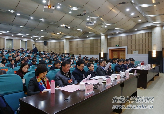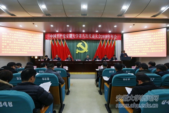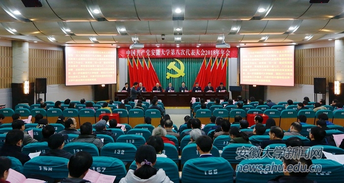 本网讯(新闻中心 陈欣 姚家宁)潮平两岸阔、风正一帆悬。12月26日下午,中国共产党安徽大学第八次代表大会2018年年会全体大会在龙河校区逸夫图书馆第一会议厅隆重召开。大会听取和审查党委工作报告,审查纪委工作报告,审查《安徽大学章程(修订)》,审查《2018年度党费收缴、使用与管理情况的报告》,对党委、纪委领导班子及其成员进行了民主测评和评议。