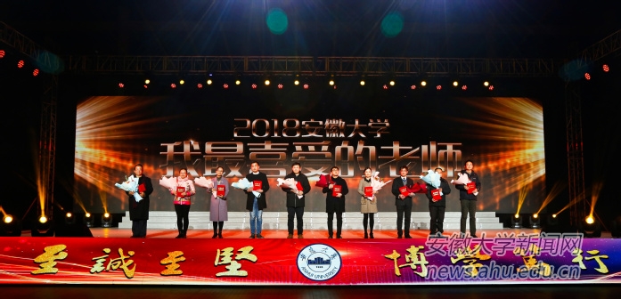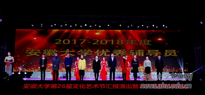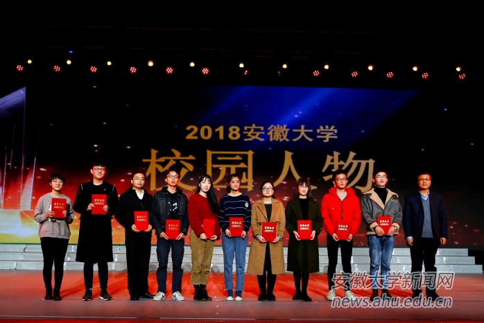 晚会还为“安徽大学2018年十大校园人物”、“2017-2018年度优秀辅导员”和“安徽大学2018年‘感念师恩’我最喜爱的老师”颁奖。