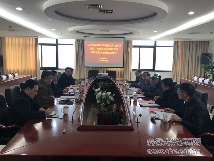 近期,“徽文院”召开建设任务书审核论证会议,围绕“徽文院”发展目标,明确“徽文院”建设任务主要集中在以下方面:一是人才培养方面,逐步扩大硕士生和博士生招生规模,以拔尖创新型人才培养为导向,努力提高研究生专业修养和综合素质;二是科学研究方面,以徽学与区域文化、汉语言文字与文化传承发展、红色文化传承为主要切入点,大力加强徽学和区域文化基础资料的收集、整理和研究力度,建设“战国文字研究中心”和“安大简研究保护与综合开发中心”,“大别山”革命历史文化研究,形成特色和优势;三是社会服务方面,与党建部门合作,开展安徽省内红色文学资源的搜集、整理、展示。开展红色文化、红色精神、红色基因的研究、宣传、教育、培训工作;四是文化创新方面。通过与文化、文物部门的协同合作,深入开展覆盖全省的历史文化资源调查,在此基础上建立包括徽派建筑、徽派园艺等在内的物质、非物质文化遗产名录。深入探索与现代科技融合以进行优秀传统地域文化的保护、传承和创新机制,服务我省的“文化强省”战略。加强中国文学精神与传统研究,挖掘爱国主义、君子精神等传统资源,实现优秀传统文化的现代转化与利用;五是国际交流与合作方面,以引领国际徽学与中国传统文化研究为基本导向,树立国家观念和精品意识,通过优秀徽学与中国传统文化研究成果外译“走出去”,提高国际合作与交流能力,在继续加强、扩展对外高层次合作交流的同时,加强与国际一流研究机构在人才培养方面的深度合作与交流。