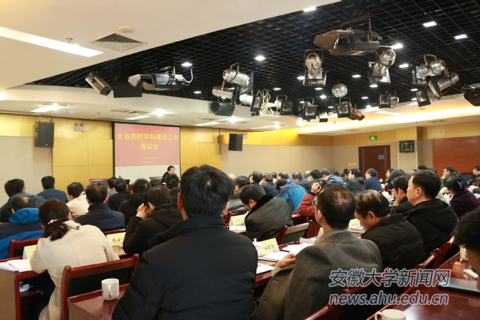中国科技大学、合肥工业大学等十九个省内高校的领导先后发言,汇报本校学科建设的工作情况,并提出建设目标和愿景。我校党委副书记、常务副校长王群京代表学校发言,他指出学科的好坏取决于学科带头人,要引进青年团队,注重人才引进的同时也注重人才培养。合肥工业大学研究生院副院长刘心报借用“三个效应”解释学风建设的特征。安徽农业大学、安徽医科大学等高校领导提出要使传统学科与新兴学科相交叉,优势学科要增加高度,弱势学科要补短板, 希望上级主管部门和政府能给予更多关注和政策支持。