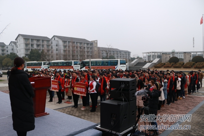 董晓红致词对相关单位的大力支持表示感谢。学生代表刘倩说,在兴奋的同时感受到家乡对自己深深关爱,感谢安徽大学和阜阳市委市政府对大学生的关怀与支持。余照务宣布发车仪式开始,他对精心组织这次活动的阜阳市委市政府表示衷心的感谢,希望同学常怀感恩,不忘初心,不辜负家乡人民的期望。