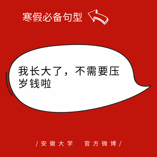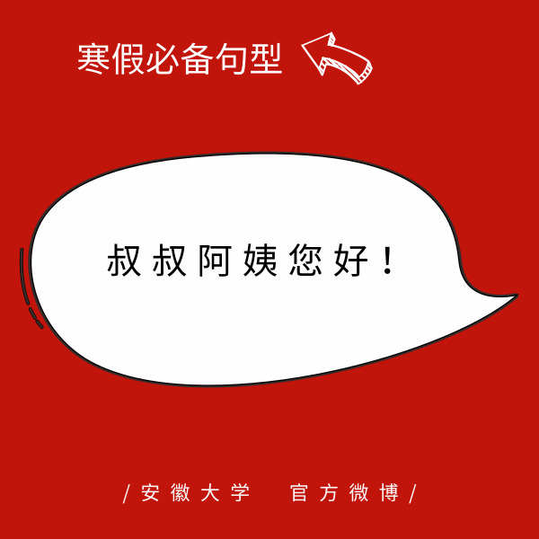 #寒假必备句型#寒假回到家,少不了的就是你问我答环节。面对亲朋好友的询问,小安为你准备了部分必备句型,接招啦!作者:陈入铭https://m.weibo.cn/1878323355/4331618049359690