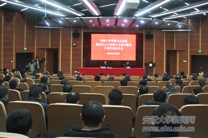 本网讯(新闻中心 陈欣 侯玉娜)2月20日下午,学校在文典阁学术报告厅召开中层领导人员会议,部署新学期工作,传达学习上级有关会议、文件精神,动员开展“严规矩、强监督、转作风”集中整治形式主义官僚主义专项行动。校党委书记李仁群主持会议并讲话,校长匡光力就新学期重点工作进行部署。校党委副书记、纪委书记胡小松,副校长虞宝桃、俞本立、薛照明、程雁雷出席会议。