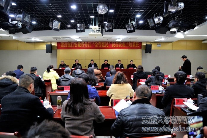 本网讯(新闻中心 王晗颖 姚家宁)2月21日上午,2019年建行安徽省分行“金智惠民”民营企业主培训班开班典礼在安徽大学磬苑宾馆四楼多功能厅举行。安徽大学党委常委、副校长薛照明,建行安徽省分行党委委员、纪委书记、副行长杨庆生出席会议并致辞,会议由建行安徽省分行私人银行部总经理周晓燕主持。建行安徽省分行、安徽大学有关部门负责同志和培训班学员参加典礼。