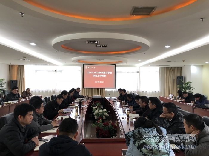 本网讯(学生处 夏为菊)2月21日上午,2018-2019学年第二学期学生工作会议在磬苑校区行政楼A501会议室召开。校党委副书记、纪委书记胡小松出席会议,学生处、学生发展中心、研究生院、保卫处、校团委等部门负责人,各院系分管学生工作党组织负责人参加会议。会议由学生处处长余照务主持。