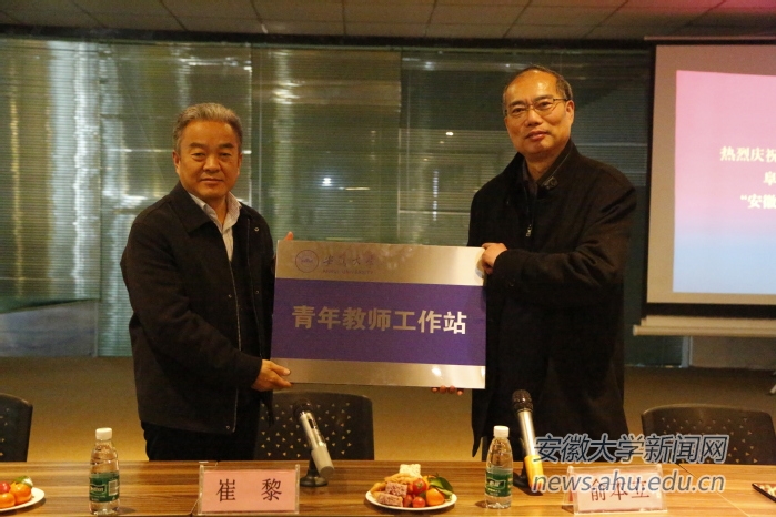 随后双方进行了安徽大学与阜阳市经济技术开发区双创基地共建的“青年教师工作站”揭牌仪式,经济技术开发区管委会主任、党工委书记刘玉建陪同俞本立参观阜阳市双创基地并展开座谈。在座谈会中,俞本立指出要把工作站做实,让教师了解基地现状,找准合作项目,找到合作模式,找出合作平台;强调我校在工作站的顶层设计上将展开专项培养计划,培养一部分专心从事人才培养,一部分专心从事知识创新,一部分专心从事社会转化的教师队伍。