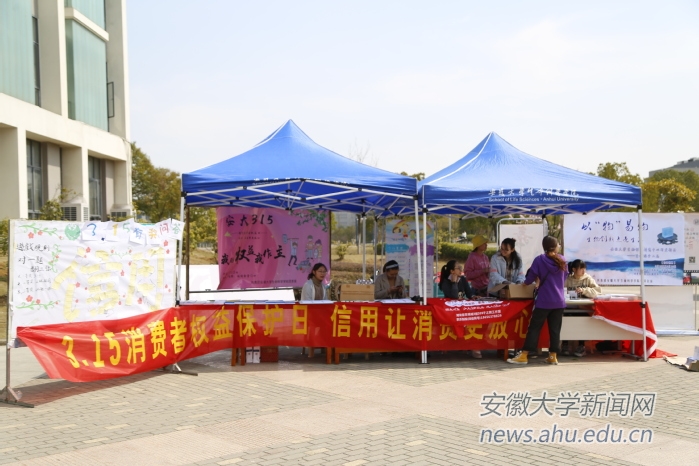 中午,在学校各食堂外,可以看到社会与政治学院与生命科学学院摆出的宣传315消费者权益日的板报和帐篷。其中生命科学学院更是将以物换物的环保性活动与消费者权益知识联系在一起。同学们可以将自己平时生活中积累的废旧空瓶拿去兑换由生命科学学院老师亲手制作的环保手工皂,同时获得一张印有消费者权益知识的宣传单。该活动的负责人说,通过这样的活动可以激发同学们对环保的关注度,同时也能够使科普的过程不单调,更能让同学们接受。