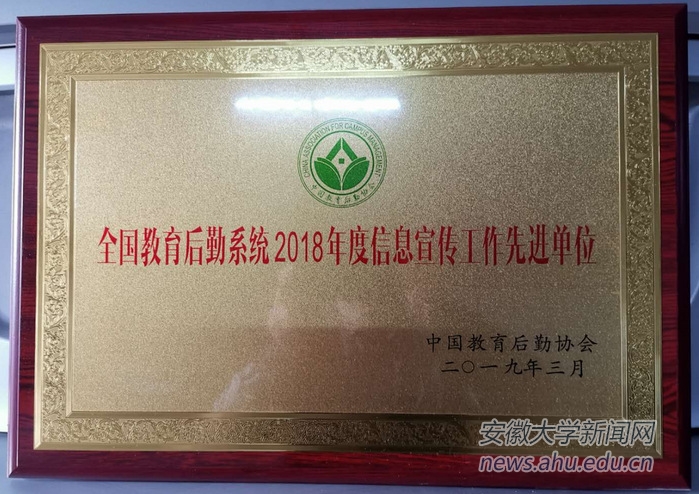 本网讯(后勤管理处 郭子哨)为了进一步加强全国教育后勤系统信息宣传工作,鼓励先进,以评促建,共同建设全国教育后勤系统的舆论阵地,为促进教育后勤事业健康发展充分发挥信息宣传的先导作用,中国教育后勤协会组织开展了“全国教育后勤系统2018年度信息宣传工作先进单位评优表彰活动”。经省级教育(高校、学校)后勤协会(研究会)组织评审推荐,中国教育后勤协会秘书处审核,决定授予我校后勤管理处“2018年度全国教育后勤系统信息宣传工作先进单位”称号。