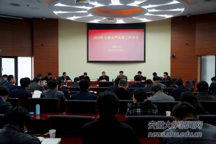 2019年学校全面从严治党工作会议的主要任务是:坚持以习近平新时代中国特色社会主义思想和党的十九大精神为指导,深入学习贯彻习近平总书记在十九届中央纪委三次全会上的重要讲话精神,贯彻落实省纪委十届四次全会和全国、全省教育系统全面从严治党工作会议要求,分析研判我校全面从严治党形势,部署学校2019年全面从严治党工作。
