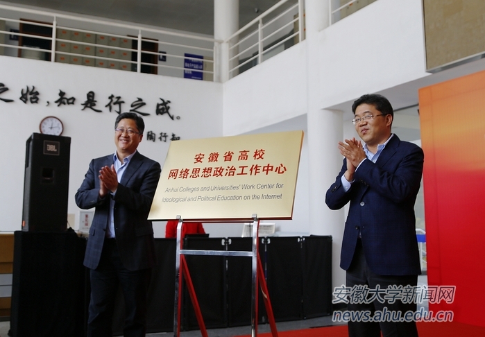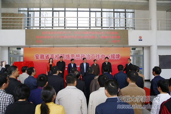 本网讯(新闻中心 宗思义 姚家宁)4月8日上午,为深入学习贯彻习近平新时代中国特色社会主义思想和党的十九大精神,进一步把贯彻落实全国、全省高校思想政治工作会议精神和全国学校思想政治理论课教师座谈会精神引向深入,推进“三全育人”综合改革试点省建设,安徽省高校网络思想政治工作中心在我校磬苑校区正式揭牌。