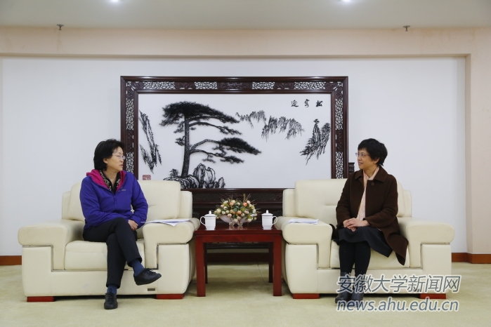 本网讯(新闻中心 姚家宁)4月11日上午,教育部语言文字应用管理司巡视员娄晶一行来我校调研。党委常委、副校长程雁雷在磬苑校区办公楼B203会见了娄晶一行,并陪同参观了在我校的安徽省普通话培训测试站。