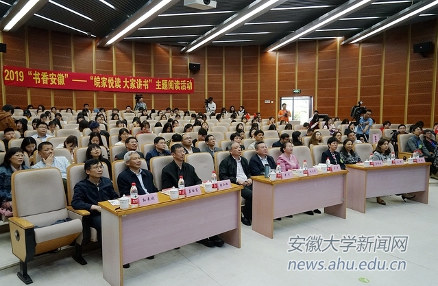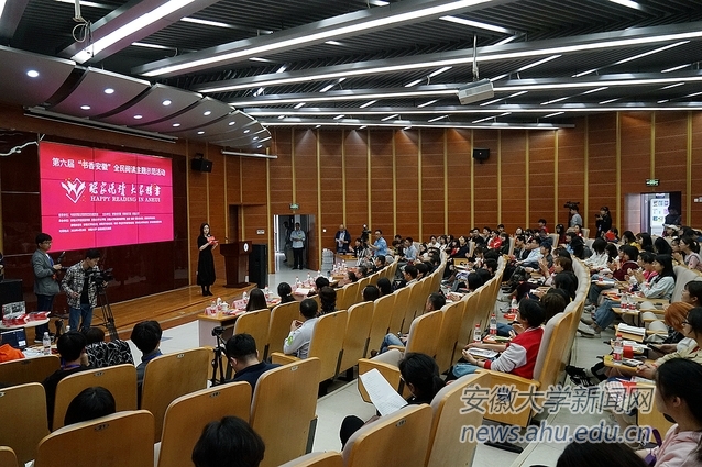 本网讯(新闻中心)4月23日是第23个世界读书日。4月20日下午,第六届“书香安徽”全民阅读主题示范活动“皖家悦读 大家讲书”在我校文典阁举办首场开讲。省委宣传部副部长、省新闻出版局(省版权局)局长、“书香安徽”全民阅读活动组委会副主任洪永平,省妇联党组书记、主席刘苹,安徽省文联名誉主席、安徽省作协名誉主席、著名作家季宇,省妇联巡视员龚明珠,校党委副书记、纪委书记胡小松,省文联党组成员、副主席、书记处书记王艳等出席本次活动。