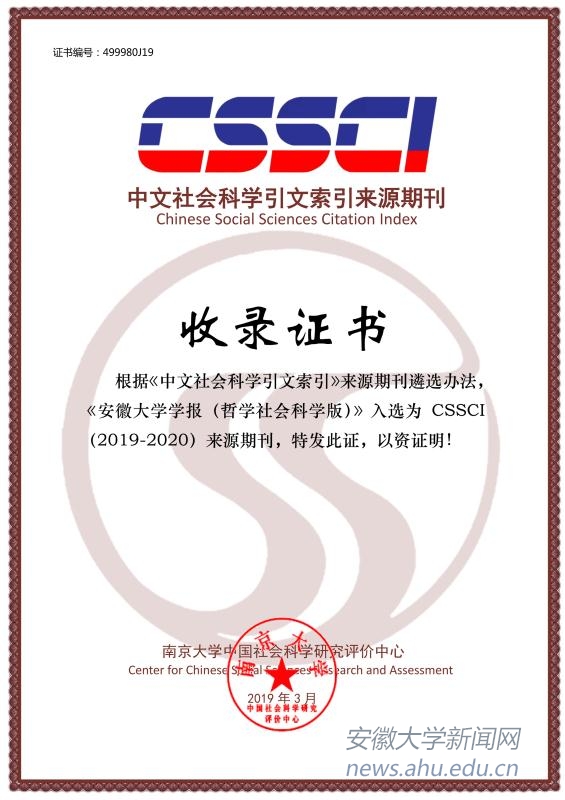 本网讯(新闻中心)近日,南京大学中国社会科学研究评价中心正式发布《中文社会科学引文索引(CSSCI)来源期刊目录(2019-2020)》,《安徽大学学报(哲学社会科学版)》再次成功入选。