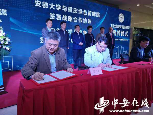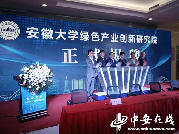 中安在线、中安新闻客户端讯 4月26日上午,安徽大学绿色产业创新研究院揭牌仪式在合肥高新区管委会举行。仪式上安徽大学与重庆绿色智能院、高新区管委会、中电科国元(北京)产业投资基金等分别签署绿研院项目合作协议,与停弦渡生物科技有限公司、百分点信息科技有限公司等科技成果转化企业也签署了项目入驻协议。
