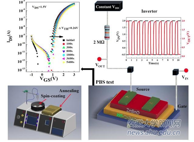 课题组利用原子层前驱体的自清洁效应和快速热退火的有机结合,有效调控了沟道层界面态密度,利用稀土元素掺杂抑制了铪基栅介质的本征缺陷和器件的漏流,器件性能良好。利用全水溶液工艺制备了基于稀土元素掺杂的栅介质,低温构筑了高性能的薄膜晶体管和逻辑反相器。超薄高k栅介质和薄膜晶体管是柔性显示器件领域的研究重点,同时也是低功耗显示器、CMOS集成电路必不可少的组成部分。该研究利用价格低廉的全水溶液工艺低温制备了性能优异的高k栅介质薄膜,且器件能低压稳定操作,反相器增益和动态响应良好。相关的研究结果对低能耗柔性器件的发展具有重要的意义。
