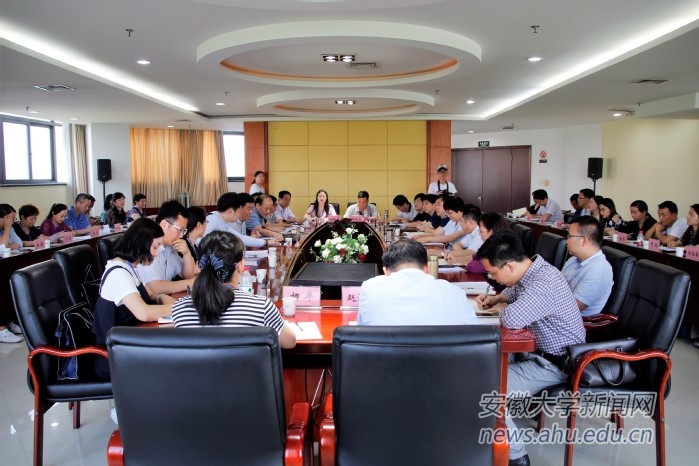 本网讯(新闻中心 徐菁菁)6月3日下午,省社科联专题培训班学员来我校调研交流,调研座谈会在磬苑校区办公楼A501会议室召开。校党委常委、副校长程雁雷,新疆维吾尔自治区社科联副主席陈翰林出席会议。安徽省社科联办公室主任韩修良主持座谈会。