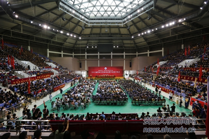 本网讯(新闻中心 宋慕妍 姚家宁 宋怡然)6月29日上午,安徽大学2019届毕业生毕业典礼暨学位授予仪式在磬苑体育馆隆重举行。校党委书记李仁群,校长匡光力,党委副书记、常务副校长王群京,党委副书记胡小松,副校长虞宝桃,副校长俞本立,副校长薛照明,副校长程雁雷,纪委书记王忠出席并在主席台前排就坐,校学位委员会成员在主席台就坐。薛照明主持毕业典礼暨学位授予仪式。