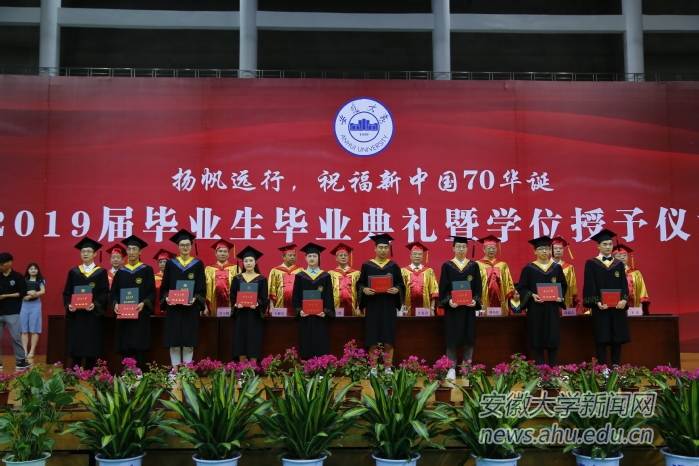 毕业典礼上播放了毕业纪念短片《桃李风华》。朗诵《惟愿分别如初见》回忆2019届毕业生在安大度过的难忘时光。全场合唱《我和我的祖国》表达对祖国七十华诞的祝福。