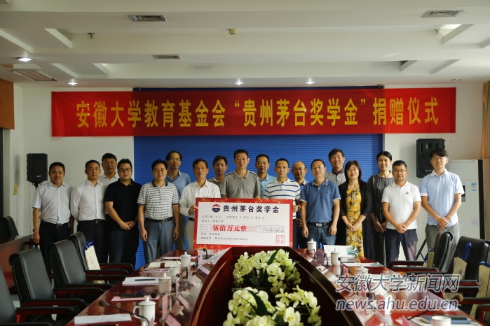 本网讯(新闻中心 姚家宁)7月2日下午,安徽大学教育基金会在磬苑校区办公楼B202会议室举办“贵州茅台奖学金”捐赠仪式,校党委副书记、基金会副理事长胡小松出席仪式,并与贵州茅台安徽经销商联谊会会长吴宁签订《关于设立“安徽大学教育基金会‘贵州茅台奖学金’”协议书》。安徽大学教育基金会秘书长郁建民主持仪式。