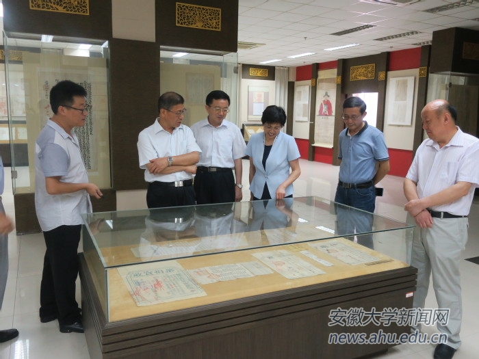 李仁群一行先后实地考察了黄山市中国徽州文化博物馆,徽州区西溪南村,黄山市高新区和黄山学院。深入了解中国徽州文化博物馆博物馆展陈布置与徽州文书的收藏与利用情况,徽州区西溪南村的产业布局和文旅规划,黄山市高新区园区建设情况,黄山学院徽州文书的收藏和徽学研究的状况等。并与相关单位召开座谈会,李仁群在讲话中指出,我校在徽学研究、徽文化资源的开发利用及徽州文书收藏保护方面有着丰富的人才与资源优势,希望双方加强资源共享,整合研究力量,共同推进徽学研究的进一步发展,推动徽文化传承创新和非遗品牌打造等方面的深度合作。黄山学院党委书记汪枫,黄山市高新区党工委书记、管委会主任金涛等参加相关活动。
