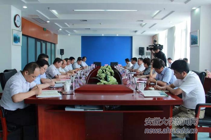 本网讯(新闻中心)8月8日下午,我校与合肥市合作座谈会在磬苑校区办公楼B202会议室举行。省委常委、合肥市委书记宋国权,市长凌云,市委副书记郭强,副市长吴春梅,市政府秘书长罗平;校党委书记李仁群,校党委副书记、常务副校长王群京,党委常委、副校长虞宝桃、薛照明出席座谈会。