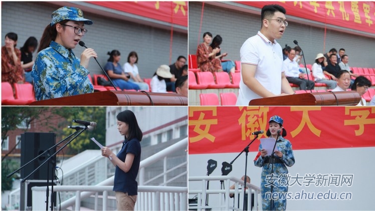 校党委副书记胡小松宣读了军训优秀个人表彰决定,校领导及军训工作领导小组成员为军训优秀教官、辅导员及学生代表颁奖。新、老生代表、教师代表先后发言。全体参会人员合唱了安徽大学校歌。