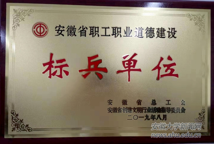 本网讯(校工会 申圣庆 )近日,从省总工会传来喜讯,我校获“安徽省职工职业道德建设标兵单位”称号。本次评选活动由省总工会、省创建文明行业活动指导委员会共同举办,共选树标兵单位100家,全省高校共有两家单位入选。