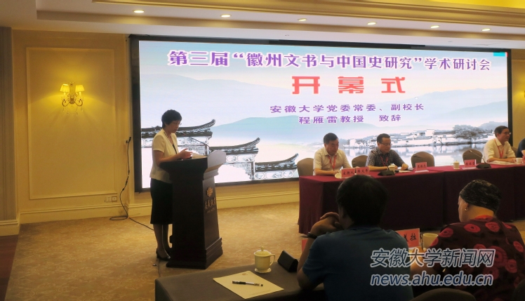 程雁雷代表学校对与会专家学者的到来表示欢迎,她表示徽学与中国传统文化研究一直是我校重点建设的学科方向,近年来我校的徽学研究取得了阶段性的成果,希望借助本次会议的召开,进一步增进我校与业内专家学者的交流,提升徽学中心的研究能力和水平。