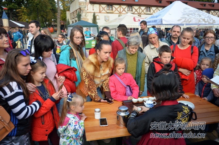 本次活动分为文艺演出与中国文化体验大师班两部分。下午两点半文艺演出正式开始,汉服秀、旗袍秀、合唱《礼仪之邦》、朗诵《将进酒》、葫芦丝独奏、《黄梅戏》轮番上演。孔院优秀学员小雪、素雅与孔院本土教师伊莉娜分别为现场观众献上了精彩的中国舞蹈和中国歌曲独唱。太极拳表演在观众的欢呼声中为此次文艺演出画上了圆满句号。文化体验大师班则是现场展示中国传统艺术,包括书法、剪纸篆刻、中国结绳与中国茶艺。