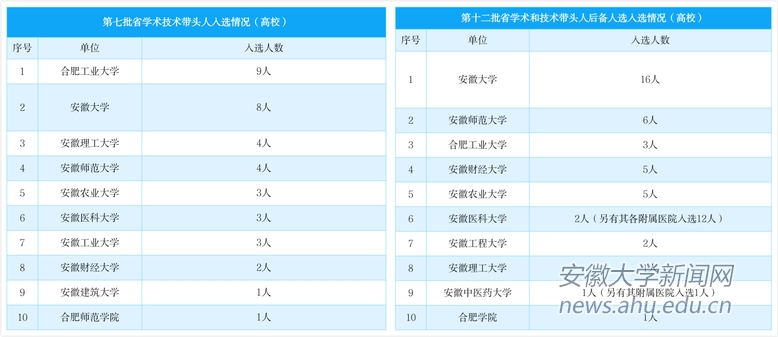 数学科学学院汪毅,物理与材料科学学院王佩红、张瑞,化学化工学院袁玉鹏,电气工程与自动化学院何舒平 ,生命科学学院叶守东、程园园,资源与环境工程学院万霞,历史系魏国锋,经济学院杨仁发,商学院李晓翔,法学院朱庆,社会与政治学院陈俊峰,艺术学院王夔,物质科学与信息技术研究院白玮、葛炳辉入选第十二批省学术和技术带头人后备人选。