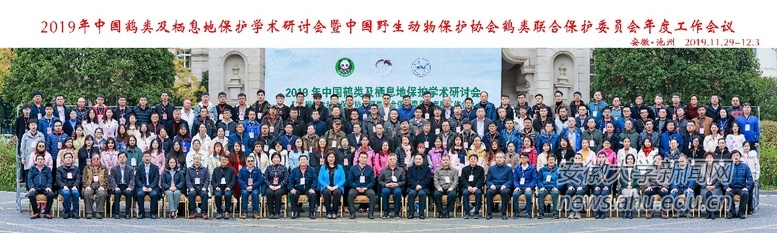 本网讯(资源与环境学院 )11月29日-12月2日,2019年中国鹤类及栖息地保护学术研讨会暨中国野生动物保护协会鹤类联合保护委员会年度工作会议在安徽省池州市顺利召开。中国野生动物保护协会监事长张习文、池州市人民政府副市长方能斌、中国野生动物保护协会副秘书长郭立新、池州市人民政府副秘书长鲍旭东、国家林草局相关司局、安徽省林业局、国际鹤类基金会,从事鹤类研究的高校和科研院所以及来自17个省市的鹤类相关保护区的代表共计200余人出席本次会议。