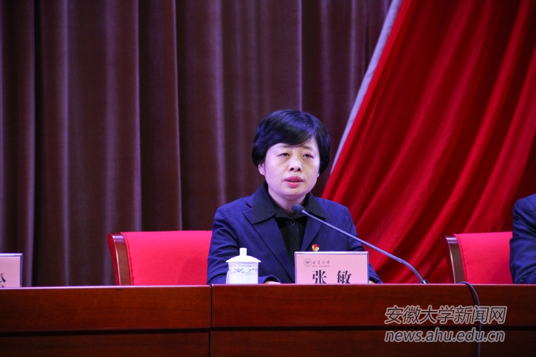 张敏代表共青团安徽省委、省学联向大会的召开表示热烈祝贺。她指出,安徽大学各级团学组织在校党委的坚强领导下,深入学习贯彻习近平新时代中国特色社会主义思想,坚持围绕学校中心工作,服务育人大局,全方位融入学校大思政工作格局,扎实推进共青团改革攻坚,全面从严治团,取得了显著的育人成效。安徽大学也开启了建设“国际知名、国内一流高水平大学”的新篇章。她代表共青团安徽省委对全校团员青年、团学干部和团学组织提出几点要求:一要深化思想引领,用习近平新时代中国特色社会主义思想构筑青年学生的强大精神支柱;二要持续深化共青团改革,不断推动工作创新发展;三是充分发挥实践育人作用,切实服务青年成长发展。她希望全校各级团学组织和广大青年学生会以这次大会为新的起点,在校党委的领导下,团结带领同学们以更加饱满的精神状态、更富实效的创新举措、更加有为的工作业绩,谱写出灿烂辉煌的青春篇章。