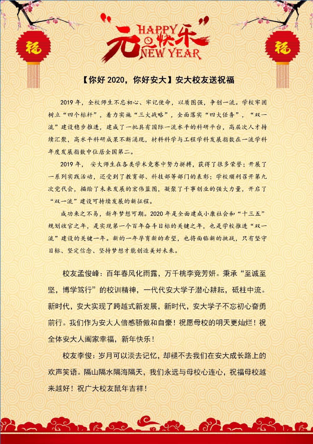 【你好2020,你好安大】安大校友送祝福