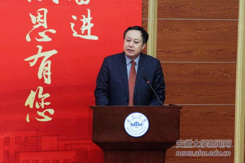 蔡敬民代表学校对荣休教职工多年来的无私奉献表示感谢。他指出,学校的发展离不开一代代安大人的共同努力,各位老师把人生最美好的时光献给了学校,为安徽大学的发展打下了坚实基础,积累了丰富经验,历史将会铭记每一位在学校奋斗过、拼搏过、奉献过的教职工,学校会更加关心关爱退休教职工。