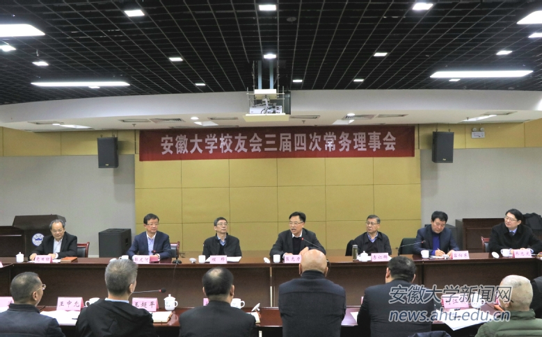 本网讯(新闻中心)1月5日上午,安徽大学校友会三届四次常务理事会在磬苑宾馆辅楼多功能厅隆重召开,校长匡光力,校党委原书记、校友会会长李仁群,我校原校长、校友会监事长程桦以及安徽大学第三届校友会常务理事共60余人出席大会。会议由校友总会副会长、浙江校友分会会长邵龙河主持。